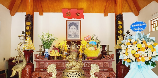 Phía sau tượng đài là nhà tưởng niệm mang kiến trúc truyền thống, kiểu chữ Đinh. Khung nhà làm bằng bê tông giả gỗ, mái lợp ngói mũi, nền lát gạch. Nhà tưởng niệm bao gồm nhà trưng bày ở phía trước cùng với một gian thờ ấm cúng và linh thiêng ở phía sau. Hai nhà được xây liền khối. Nội thất tại đây được thiết kế, trang trí, mỹ thuật đẹp, có sự kết hợp hài hòa giữa phong cách bài trí truyền thống với nghệ thuật trưng bày hiện đại. Thông qua những bức ảnh, hiện vật, tư liệu, bản đồ, bản trích, tranh vẽ minh họa sự kiện lịch sử để du khách phần nào hiểu được cuộc đời và sự nghiệp cách mạng vẻ vang của đồng chí Nguyễn Thị Minh Khai (nguyên Ủy viên Xứ ủy Nam Kỳ - Bí thư Thành ủy Sài Gòn – Chợ Lớn), từ khi sinh ra với thời ấu thơ đầy cá tính, thời tuổi trẻ sôi nổi với những hoạt động không biết mệt mỏi kể cả trong nước lẫn nước ngoài (Trung Quốc, Liên Xô)…đến cái chết đầy hiên ngang, oanh liệt.